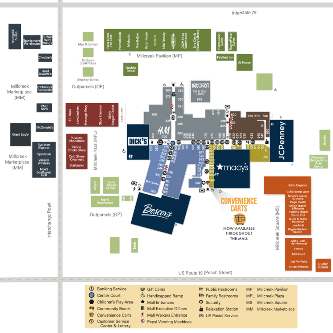 As part of the super-regional Millcreek Mall Complex in Erie, Pennsylvania, Millcreek Plaza provides a superb complement of shopping and dining options. An extensive renovation has created a beautiful new look for the Millcreek Plaza. The plaza includes popular retailers like T.J. Maxx, Shoe Carnival, Ollie’s Bargain Outlet, Massage Envy and LensCrafters. Pulakos Chocolates, Cold Stone Creamery and Starbucks appeal to a wide variety of tastes.